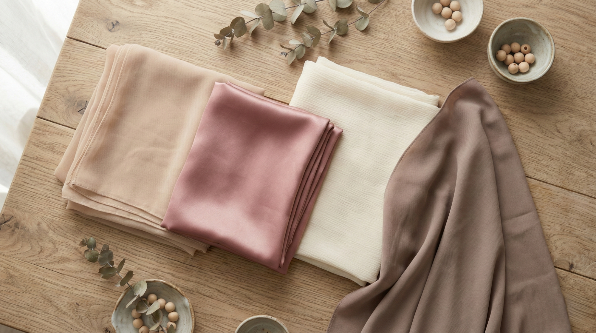 For formal wear, you want a fabric that offers a luxurious "fall" and drape. A high-quality Korean nida hijab or soft satin provides a beautiful sheen that elevates any evening outfit. Keep in mind that slippery fabrics like chiffon or silk always require a good cotton under-cap to stay in place.
